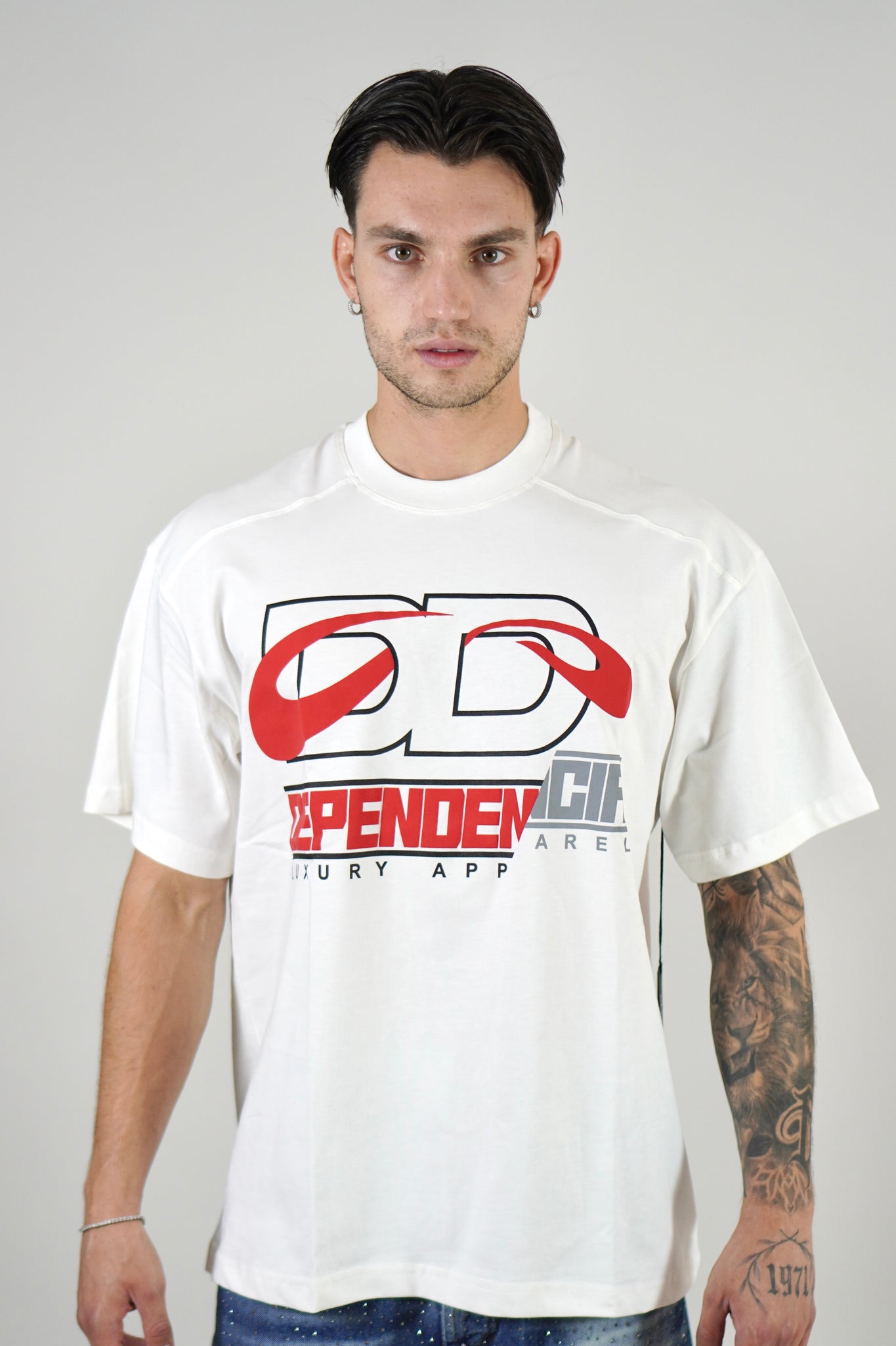 Il modello e’ alto 1.80 e indossa una L