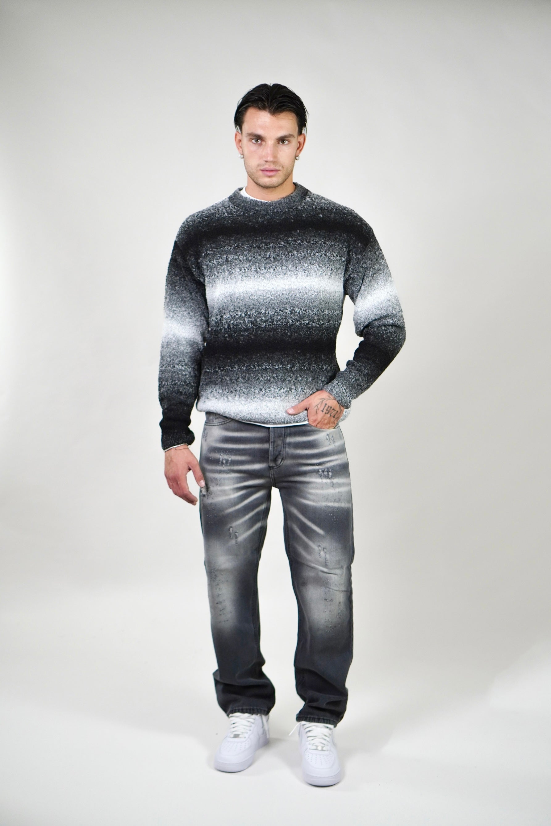 Il modello e’ alto 1.80 e indossa una 46