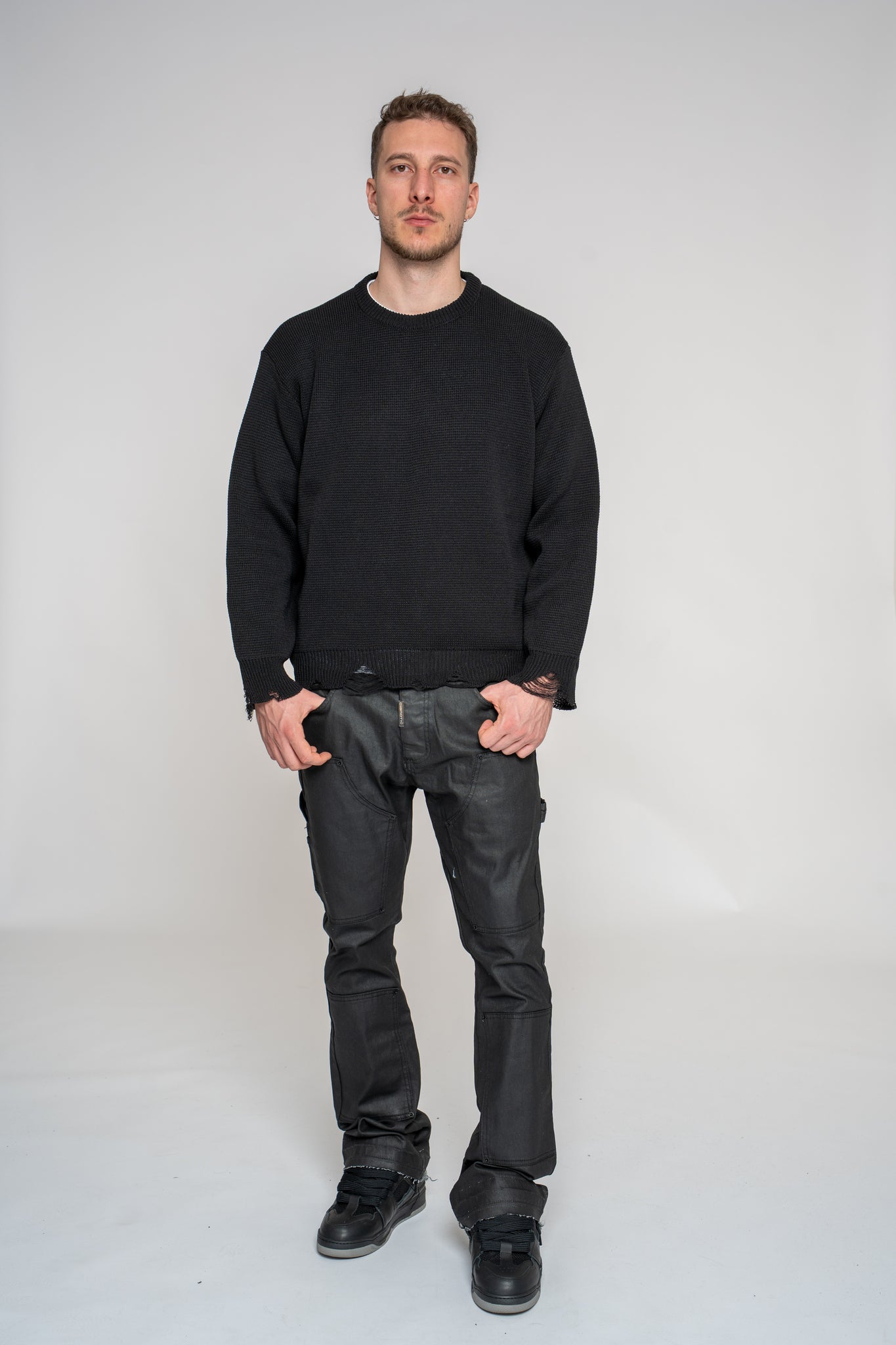 Il modello è 183 x 78 e indossa 48